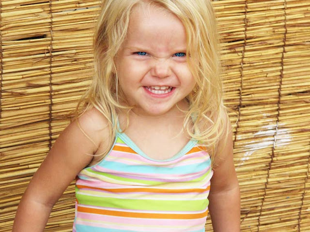 Our littlest squirt loves to come snuggle first thing in the morning... whether she finds me reading in bed (like in these pictures here), whether she finds me making bread in the kitchen (means I've got to wash dough off my hands-find and aunt free spot-and pull her onto my lap while she gently pinches my face in those sweet chubby hands, or as of more recently, whether she stumbles out to the terrace and then backs up to my chair saying "Pick me up... I want to pinch you." And she often will have something else, something funny and strange that she wants to say - expressed in a sleepy two year old voice.